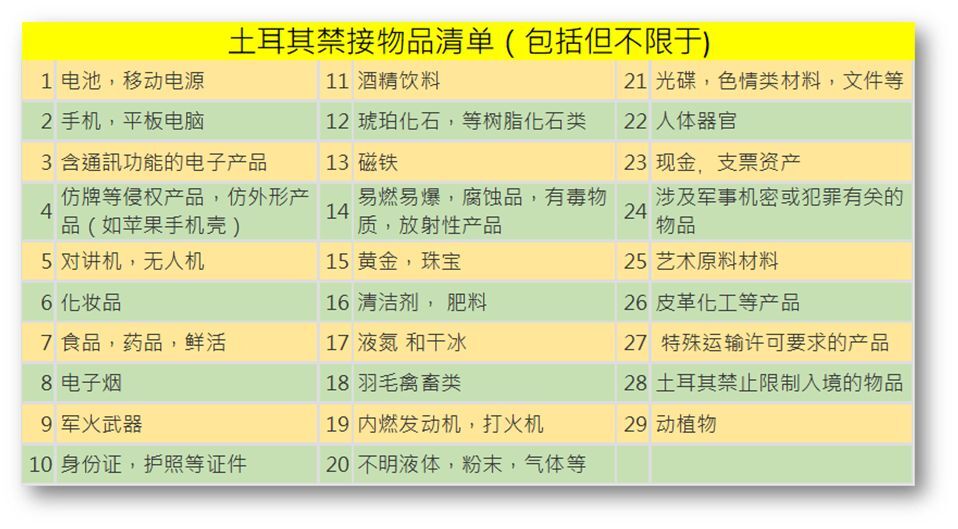 答:关于土耳其专线,禁运物品为粉末和液体。带电普货是可以的,但需要提前提供产品链接给物流方确认。